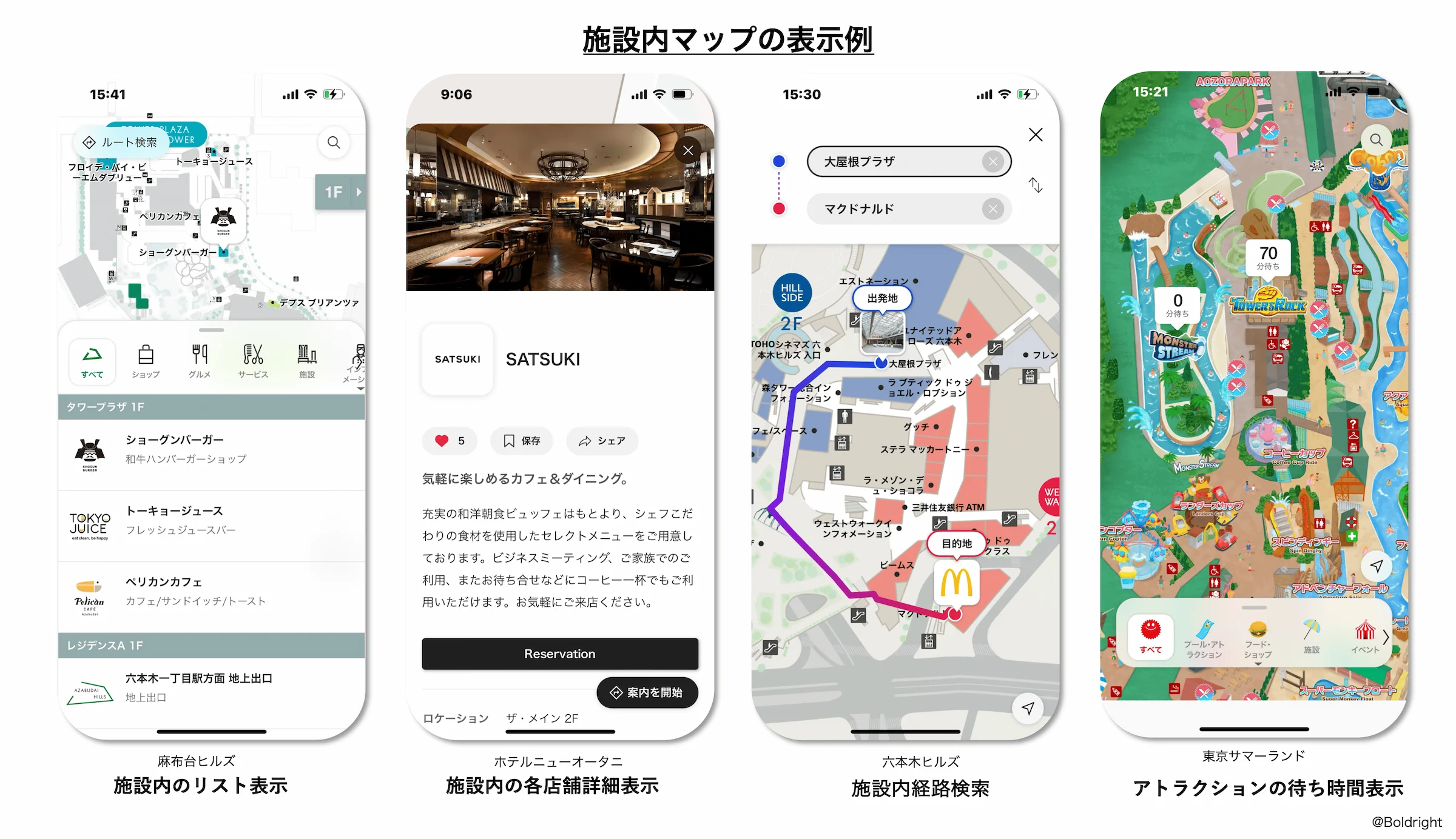 商業施設、テーマパーク、空港、ホテル等、様々な施設内マップが地図アプリで閲覧可能に